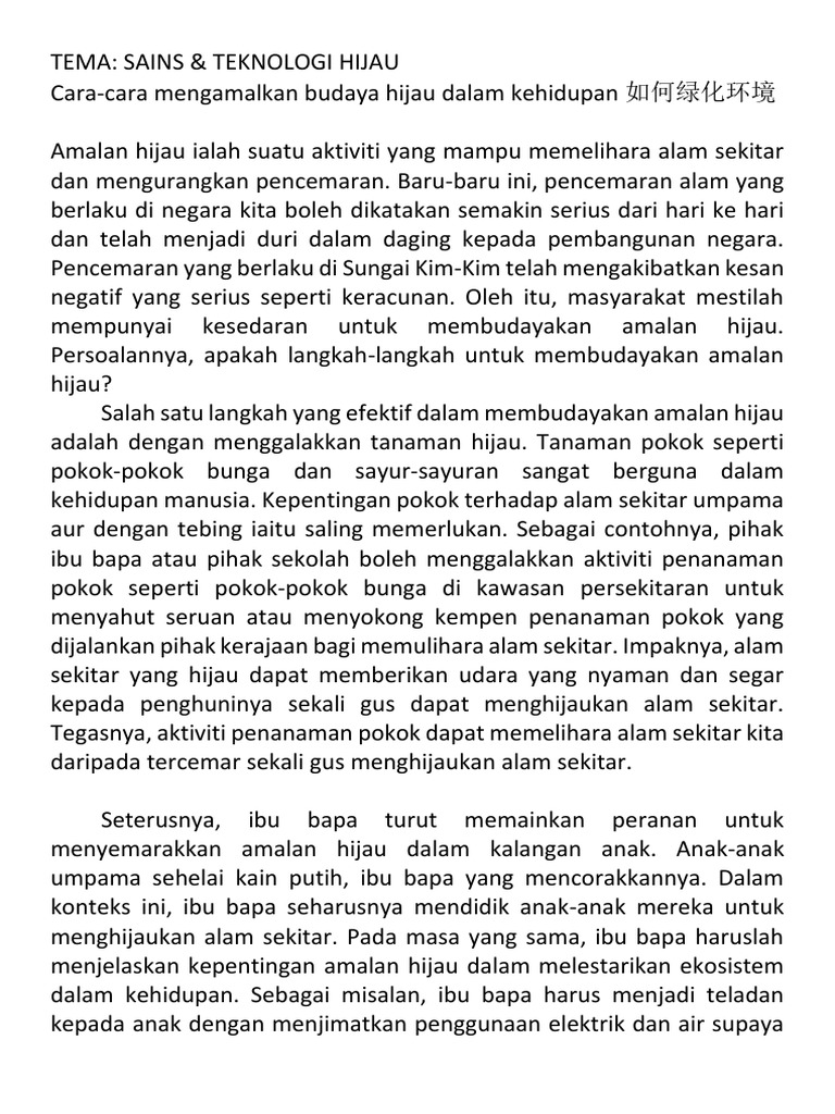 CONTOH KARANGAN SPM LANGKAH MEMELIHARA ALAM SEKITAR TANGGUNGJAWAB BERSAMA PERCUBAAN MRSM 2015 T Alam sekitar adalah sesuatu yang penting dalam kehidupan manusia tidak mengira bangsa agama dan negara. Sejak kebelakangan ini pembangunan tanpa kawalan merupakan perubahan kian pesat berlaku di negara kita pada alaf globalisasi ini. 13 Cara Melestarikan Alam Sekitar.